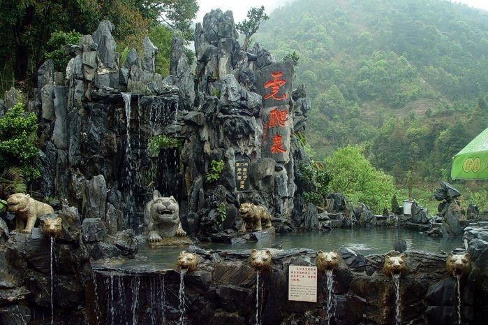 该瀑布坐落在三平溪出口 处的马蹄形山谷中,溪流两边危石耸立,山清水秀,奇花异草,岭岩相间。集两面广阔的三平溪河水从悬崖绝壁的决口冲出,跌落处宽二十米、高三十四米。居高临下,望而生畏,瀑布跌落,飞珠溅玉,直泻如下,其声如雷。毛氏洞 出三坪寺门,向右侧公路前行,在九层岩下的山坳里,矗立一块飞来的巨石,十多米见方,其状如盖,石顶竖立着一根石幢,状如烛,这是佛家镇妖辟邪之物。岩石上镌有“毛氏洞”三字,如今残碑还保留在三坪寺内。相传,杨义中禅师当年辟基三平,法威制服了“山鬼”。使“山鬼”为其建寺,寺成后禅师把“山鬼”禁锢在洞里,移巨石镇住洞口,并在岩顶插一石幢,道:“等 石幢开花,你们才能出来”,山鬼终于蛰伏洞里,此后,谁也不敢在石幢上点火挂灯,以免惹动山鬼骚扰。